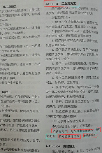 ?7月29日,國家職業(yè)分類大典修訂工作委員會審議并頒布了2015版《中華人民共和國職業(yè)分類大典》(下稱《大典》),“工業(yè)清洗工”作為新職業(yè)正式納入《大典》,“化學(xué)清洗工”、“高壓水射流清洗工”、“鍋爐清洗工”、“中央空調(diào)清洗工”及“清罐工”等作為新工種正式納入《大典》,標(biāo)志著工業(yè)清洗工職業(yè)身份及其所涵蓋工種身份在“國家確定職業(yè)分類”上首次得以確認(rèn)。