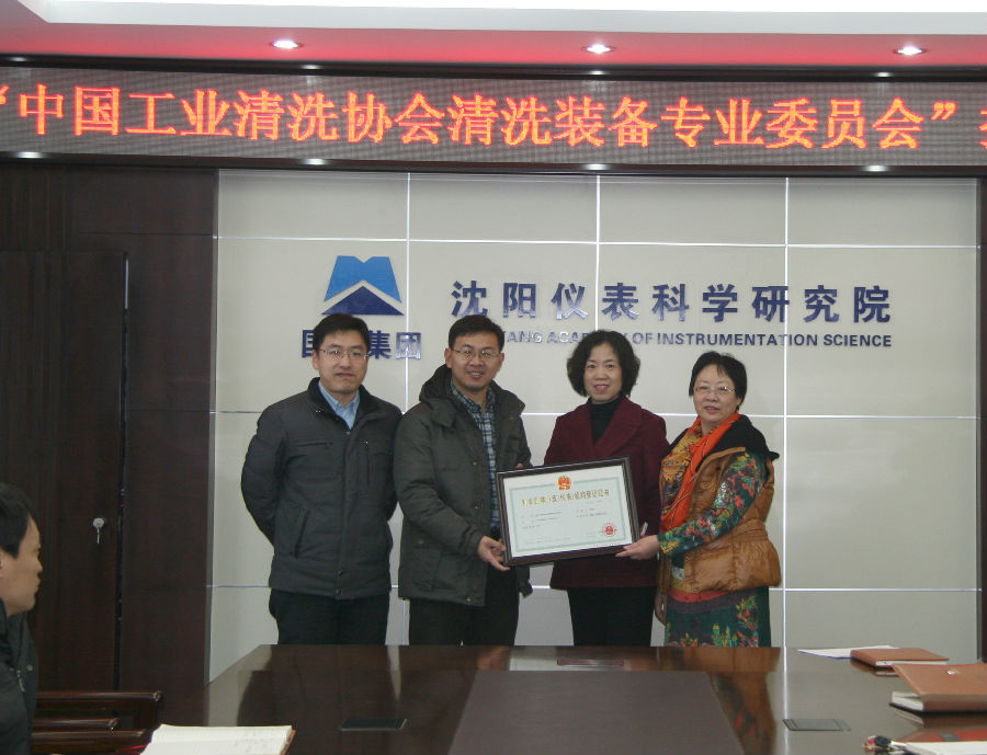12月19日,中國工業(yè)清洗協(xié)會清洗裝備專業(yè)委員會頒證儀式在沈陽儀表科學(xué)研究院舉行,中國工業(yè)清洗協(xié)會秘書處周新超副秘書長代表協(xié)會向清洗裝備專業(yè)委員會掛靠單位——沈陽儀表科學(xué)研究院頒發(fā)了專委會登記證書(見圖1)。清洗裝備專委會主任委員由協(xié)會副理事長、沈陽儀表科學(xué)研究院院長曾艷麗擔(dān)任,秘書長由沈陽儀表科學(xué)研究院匯博裝備公司銷售經(jīng)理余菁華擔(dān)任。