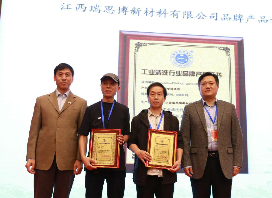論壇開幕式上,中國工業清洗協會發布了2019年度行業清洗化學品驗證中心和工業清洗行業品牌產品。江西瑞思博新材料有限公司、長沙艾森設備維護技術有限公司建設的產品驗證中心成為行業2019年度清洗化學品驗證中心。由江西瑞思博新材料有限公司生產的“瑞寶”牌水基清洗劑(RSB系列、GRB系列)、“瑞寶”牌溶劑型清洗劑(RSB系列、GRB系列)、“瑞寶”牌防銹劑(RSB系列)、天津海威斯特高壓泵制造有限公司生產的HW250E超高壓柱塞泵則成功評定為2019年度工業清洗行業品牌產品。
