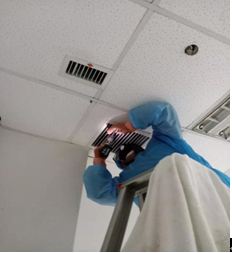 衷心感謝西安榮協公司的企業員工,當時渭南已經確診3例,檢修清洗消毒的隔離病區已經有確診病例入住,充滿了感染風險,西安榮協公司的員工沒有猶豫,只是默默的在按著科學專業的方法一步步工作,先除塵,然后清洗,最后消毒,最終圓滿的完成了此次任務,得到了客戶的首肯。